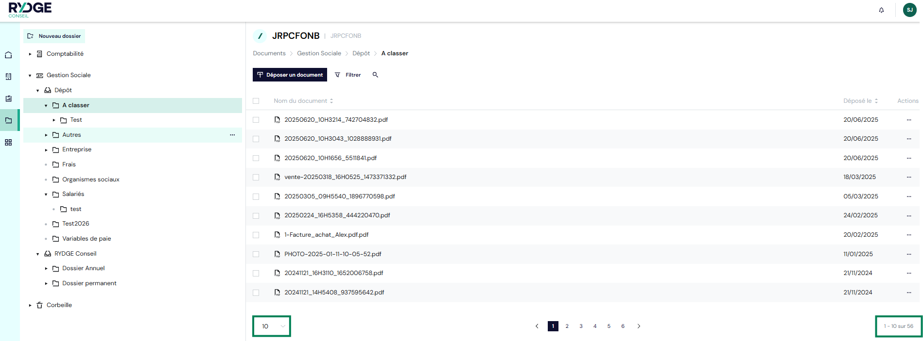 - Etape 1 : cliquez en bas de page sur le nombre de documents à afficher par dossier
