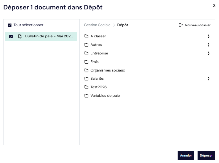 - Méthode 1 : Le bouton "Déposer un document" permet de sélectionner un ou plusieurs documents depuis son ordinateur