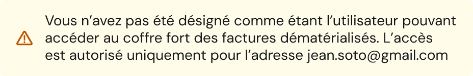 ℹ️ Si votre adresse email n'a pas été désignée pour accéder au coffre-fort sécurisé, alors vous visualisez ce message : |