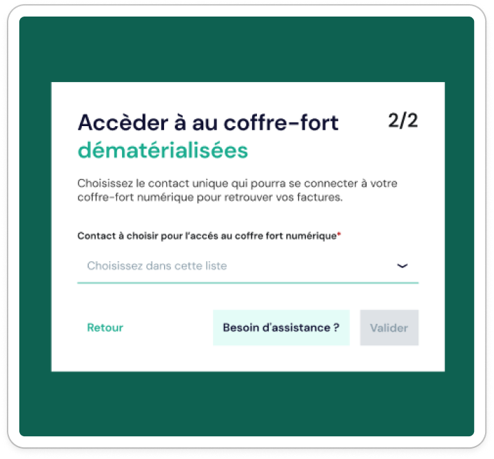 | ℹ️ Un seul utilisateur par dossier peut être désigné pour accéder au coffre-fort. |