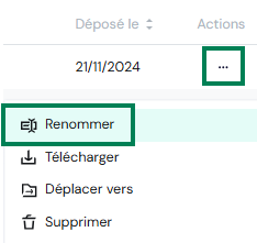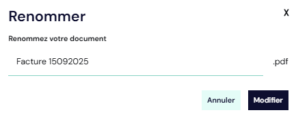 Important : Pour les documents déposés dans les dossiers synchronisés avec l'outil de votre comptable, le renommage d'un document sera autorisé tant qu'il n'a pas été envoyé automatiquement dans un délai d'une heure.
