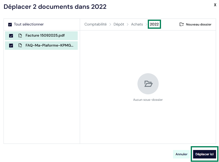 - Etape 5 : cliquez sur "Déplacer ici" pour finaliser l'opération