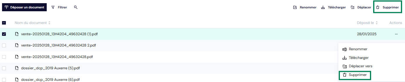 - Etape 2 : sélectionnez le/les documents que vous souhaitez supprimer