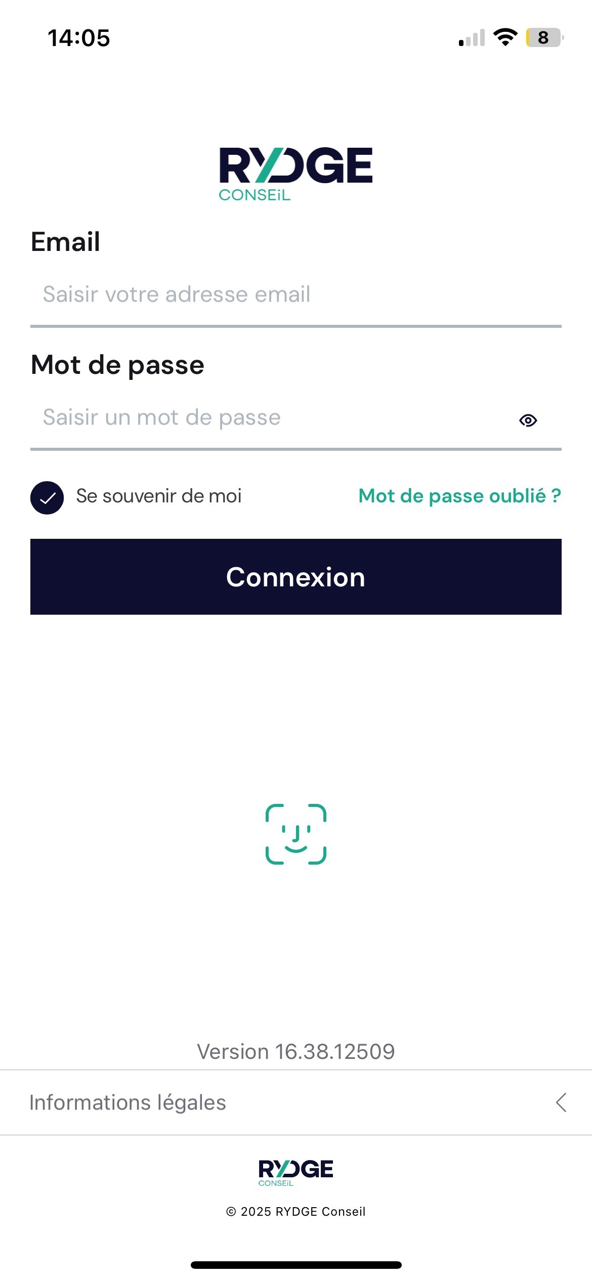 - Etape 1 : ouvrez l'application RYDGE Conseil sur votre téléphone