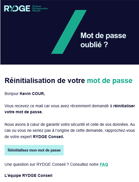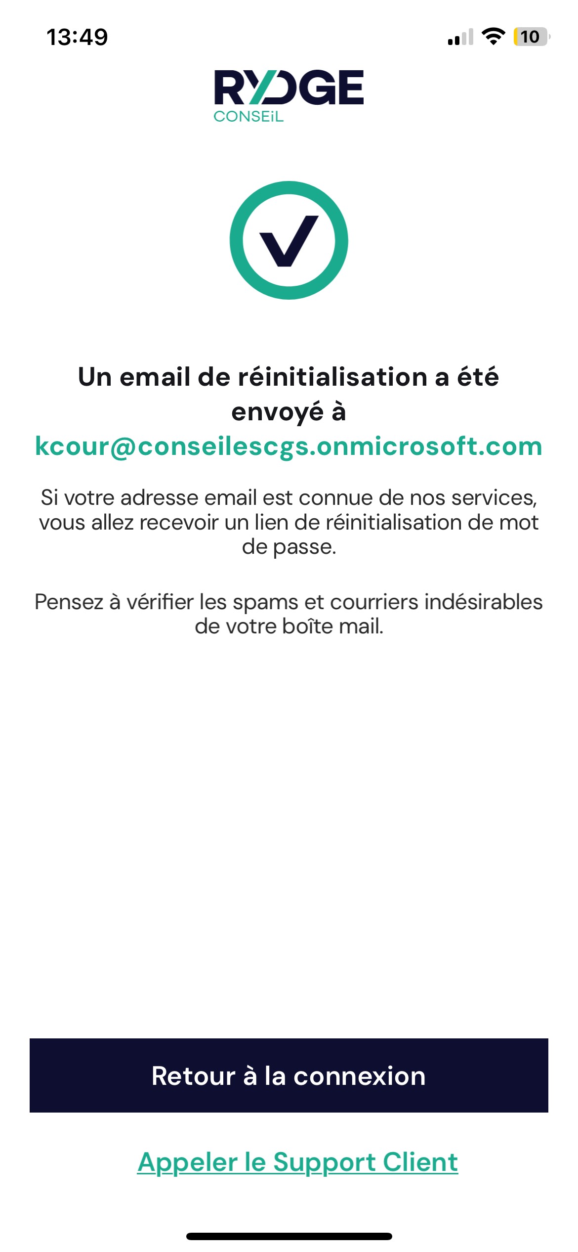 Vérifiez que vous utilisez bien le bon email, celui lié à votre compte RYDGE Conseil.
